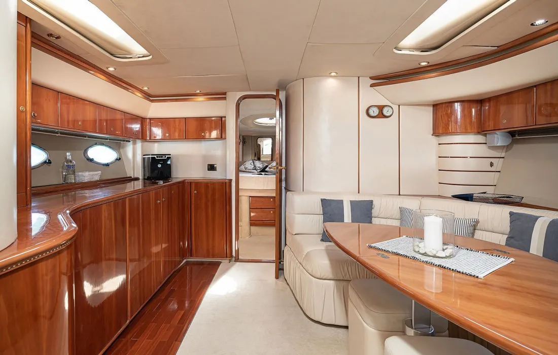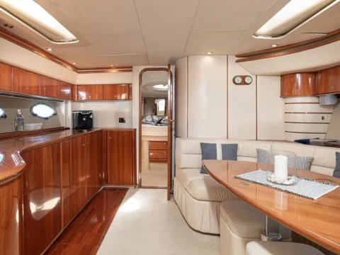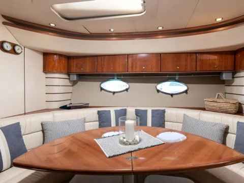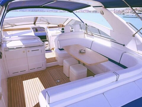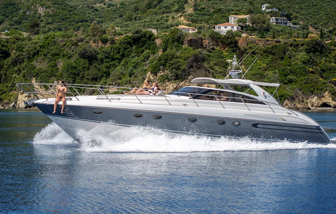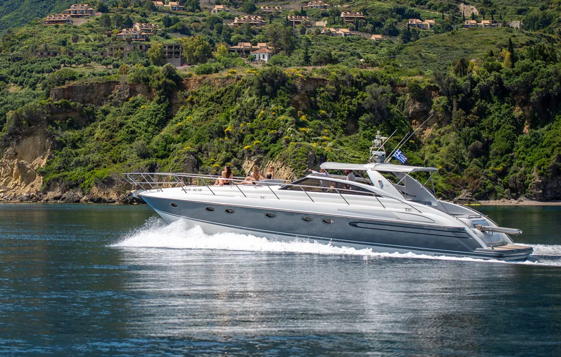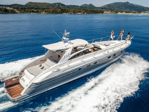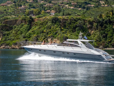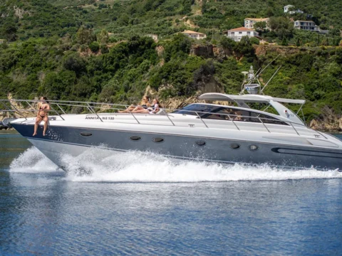 The Princess 56 is a refined motor yacht powered by twin Volvo D12 engines with a total of 1,450 HP, delivering an exceptionally smooth and powerful cruising experience. With spacious interiors, premium materials, and generous outdoor lounging areas, it offers the perfect setting for relaxing and exploring the Ionian islands. Ideal for families or groups of friends seeking a stylish private cruise around Zakynthos and beyond.
